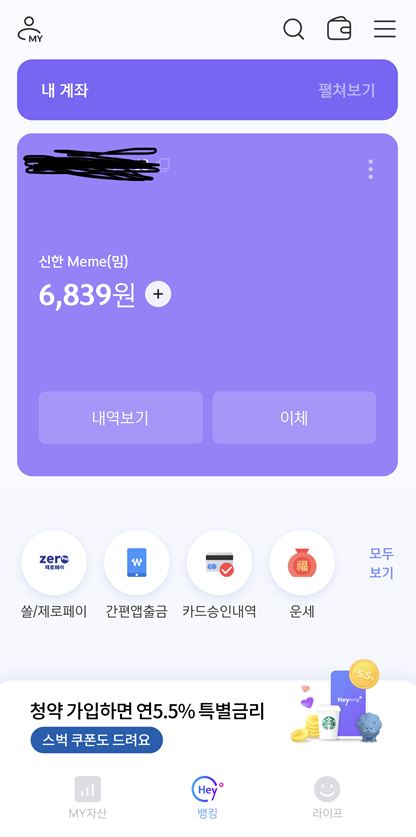 | 카카오뱅크 미니 | 신한 Meme(밈) - 계좌 등록시 | |
