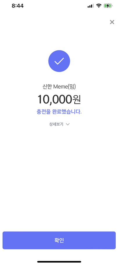 최소 충전금액이 10000원이다. 물론 Meme 위에 나온 가상계좌를 통해 충전하면 충전 금액 제한이 없다. 잔액 옆 플러스 버튼을 눌러 충전했을때만 제한이 있을뿐.