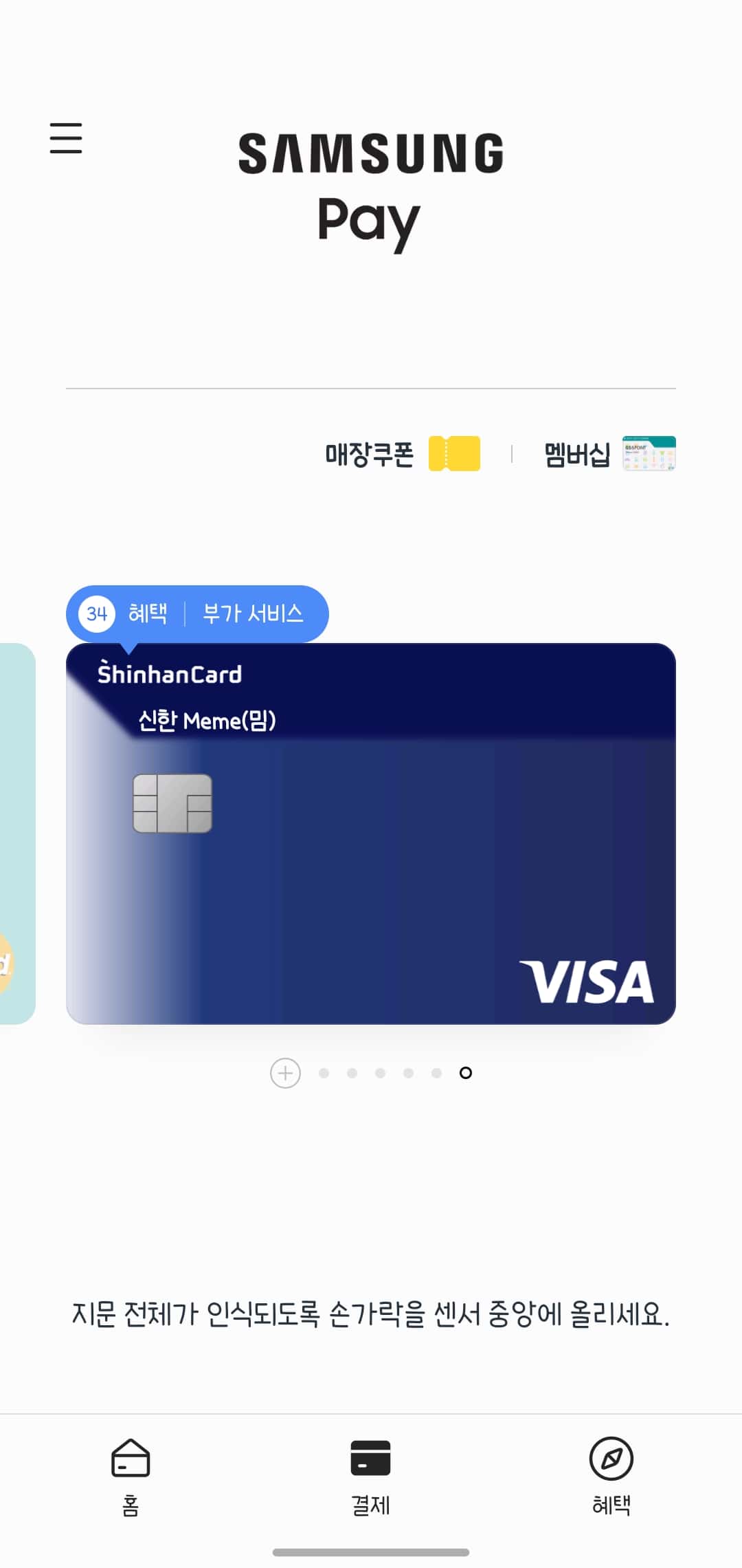 또한 토스에서 조회도 되지 않아 전월 실적 충족 현황 및 이용 내역을 편하게 알기 어렵다. 다행히도, 신한카드는 기명식 선불카드는 삼성 페이에 카드 등록이 가능하다.