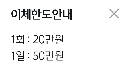 | 1회 충전한도 | 20만원 | |