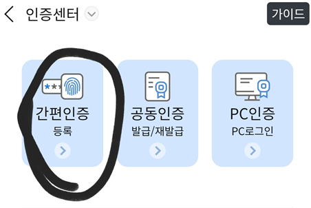 지문 또는 비밀번호를 등록 후 거래하면 된다. 인증서는 필요 없다.