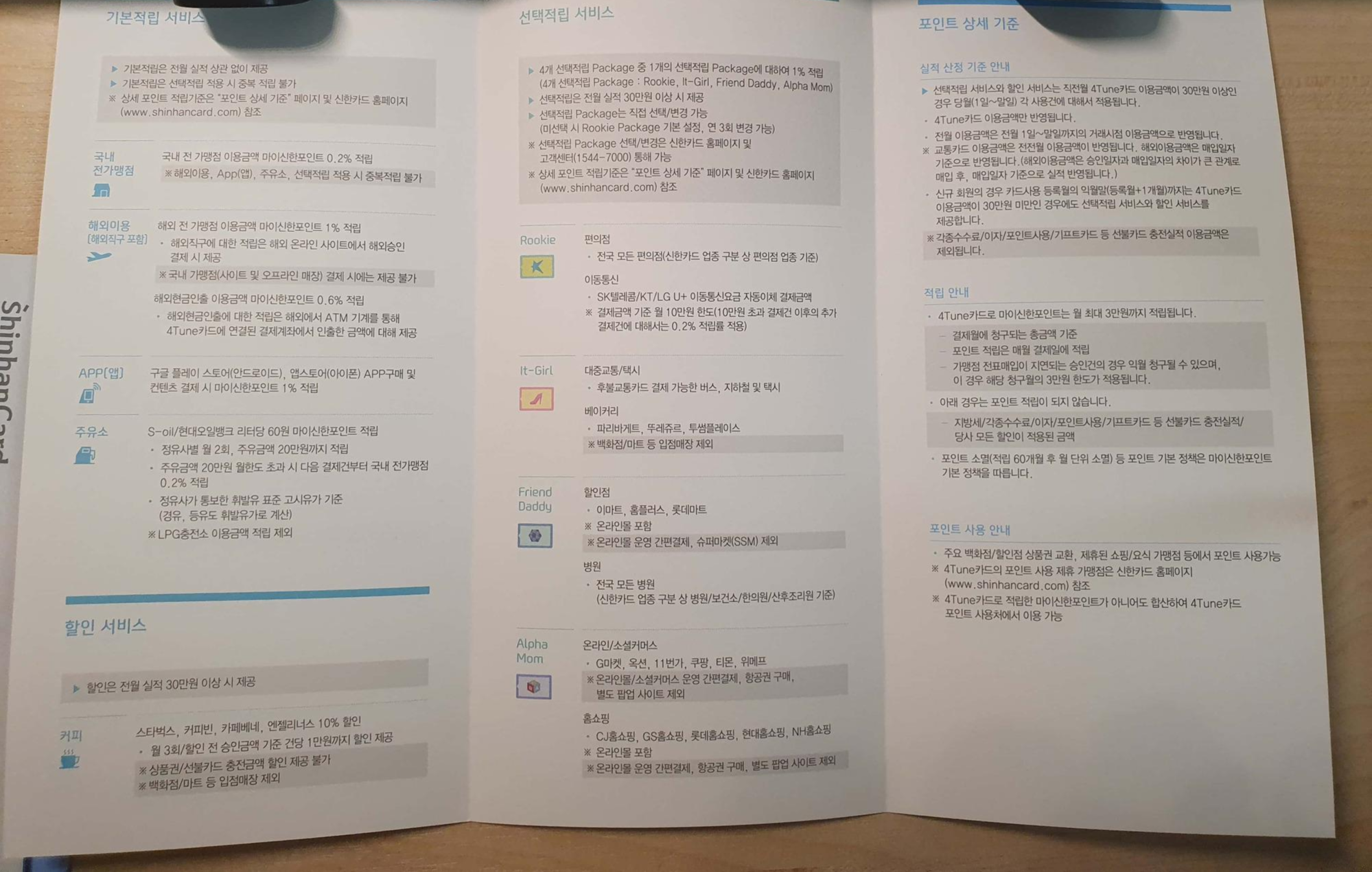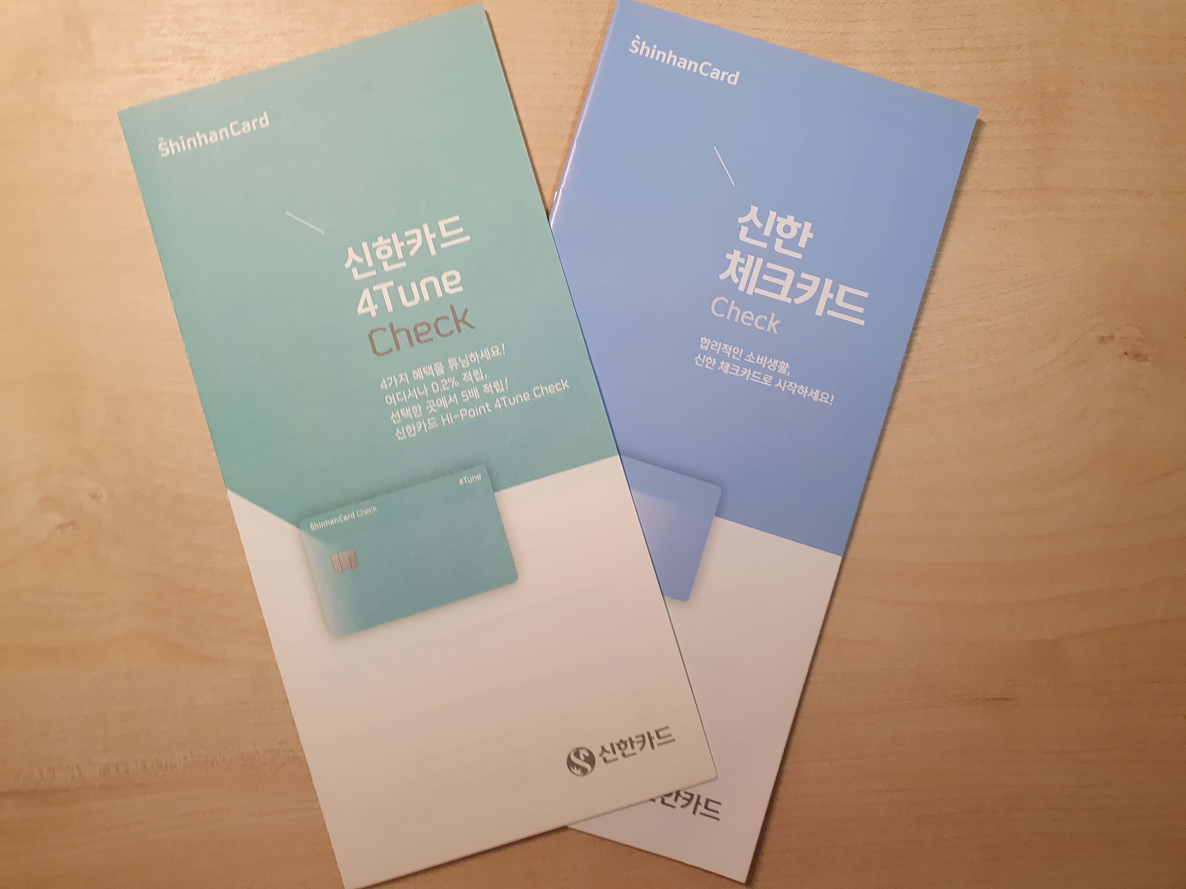 왼쪽의 사진을 보면 알겠지만, 딥드림이나 글로벌 플러스보다 훨씬 투명하다. 개인적인 취향이지만 이 카드가 신한카드 체크카드 시리즈 디자인중에 제일 마음에 든다. 카드 봉투 속에는 4Tune 안내장과 신한 체크카드 안내장이 들어있다.