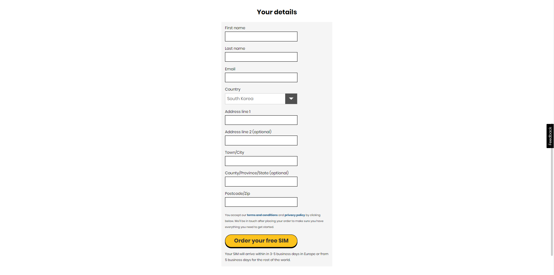 이제 카드 디테일들을 입력하주면 심 활성화가 완료된다. 이제 심을 폰에 끼우고, 영국에서 아무 문자나 받아보자.
