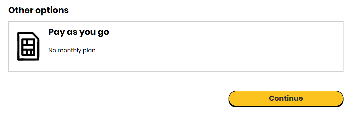 이제 아까 SIM Active를 끝낸 곳으로 돌아가보자. 맨 아래로 내려보면 Pay as you go 플랜을 볼 수 있을 것 이다.