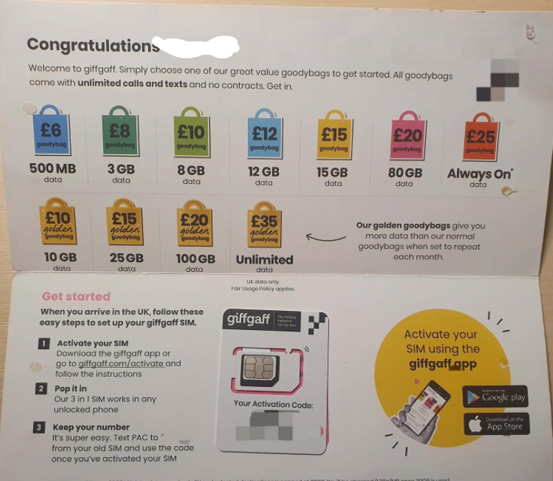 한국에서 영국 전화번호 만들기 - Giffgaff(기프가프) 유심 수령 및 개통기