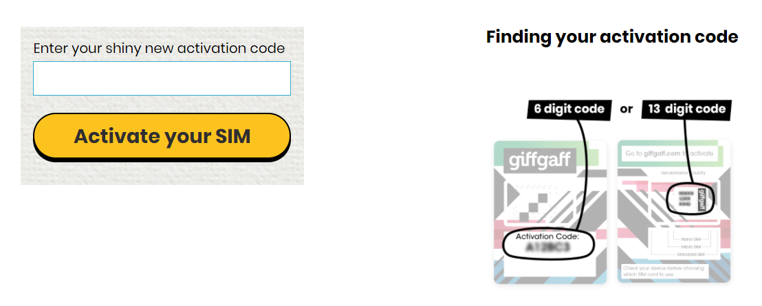 Activation code는 심카드 아래에 적혀있다. 옆의 가이드를 참고하자.