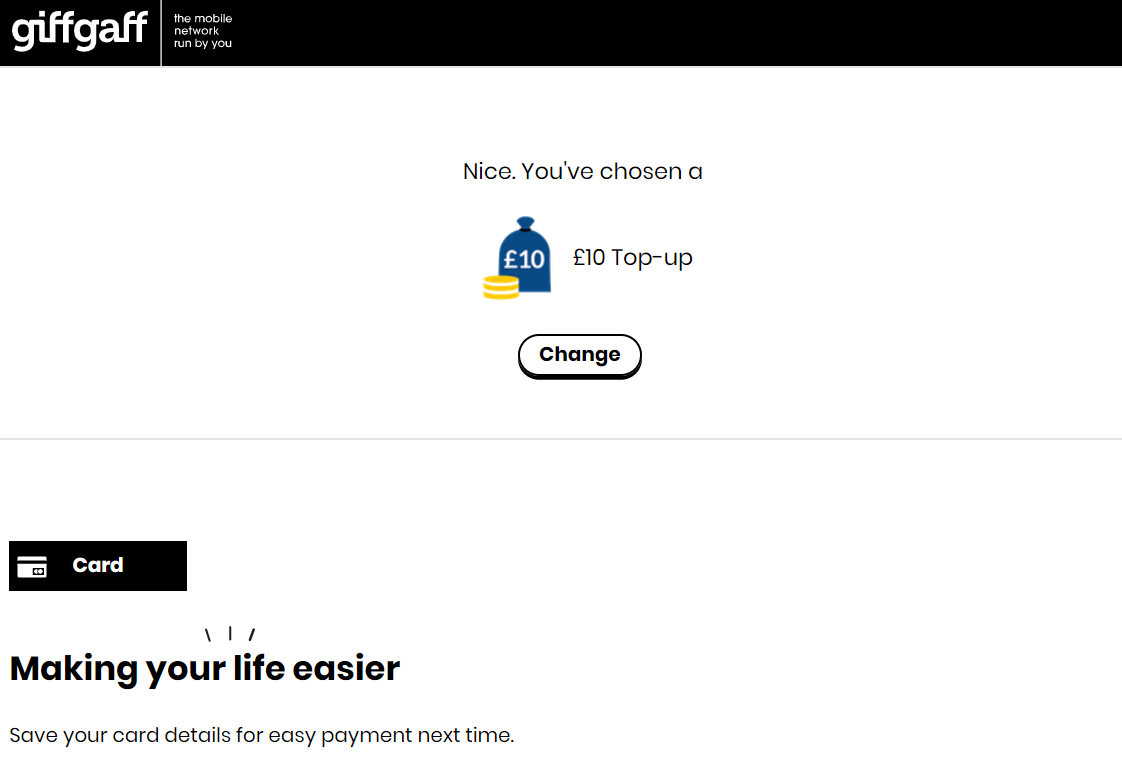 물론 Giffgaff도 손해를 보고 SIM 을 무료로 보내주지는 않았을 것 이다. 10파운드부터 충전을 해야한다.