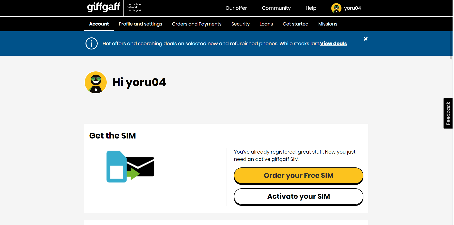 먼저, https://www.giffgaff.com/ 에 들어간다.